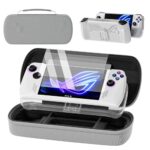 QUAGGYキャリーケースは、ROG Ally X 2024対応の3 in 1アクセサリーセットです。充電器用大型キャリーケースバッグ、ソフトシリコン保護カバー、スクリーンプロテクター2枚付きで、持ち運びやすいグレーのデザイン。
