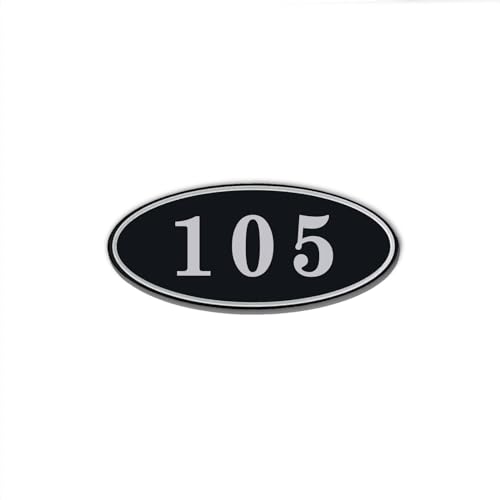 XILIWU 部屋番号 プレート 両面テープ付き 楕円型 アクリル製 厚み2mm 10×4.4cm ブラック ステッカー シール 耐候 耐水 屋外 (105) 高価買取中