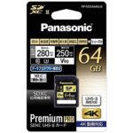 パナソニック64GB SDXC UHS-IIメモリーカードRP-SDZA64GJKは、高速データ転送(最大300MB/s)を実現し、4K動画や高画質写真の撮影に最適。耐温度性や防水性も備え、信頼性が高い。