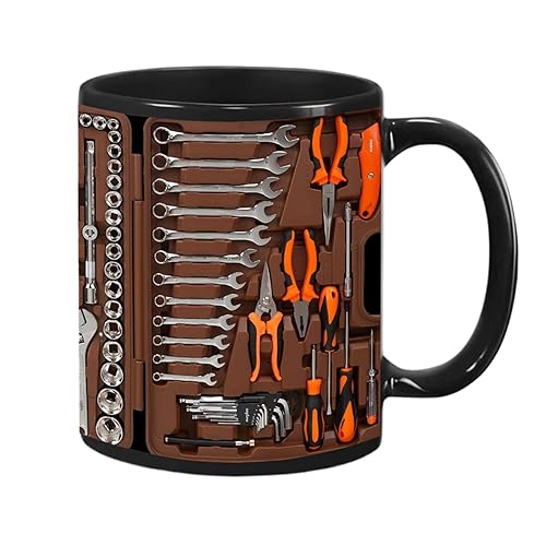 工具箱デザインのメカニックマグカップ。350mlで、誕生日や父の日のギフトに最適。車好きのお父さんや夫へのプレゼントにおすすめの陶器製コーヒーカップ。
