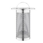排水口ゴミ受けは、細かいゴミをキャッチし、洗面器や小型シンクに最適なスリム型デザイン。全ステンレス製で、ハンドル付きで手を汚さず使いやすい多機能なキッチン用品です。家庭用や業務用としても活躍します。