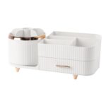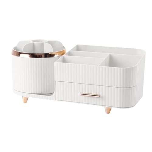 アクリル製のビューティー収納ボックスで、パーティションデザインの回転ストレージラック付き。引き出しもあり、メイクアップキットの整理に最適です。