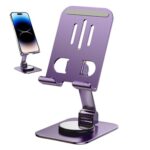 回転式携帯電話スタンドは金属製の折りたたみ式で、視野角調整が可能。360°回転機能付きで安定性も抜群。携帯電話やタブレットに最適で、自宅やオフィス、旅行におすすめ。