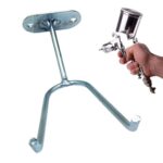 壁取り付け可能な鉄製ペイントスプレーホルダー。防錆設計で、多目的に使用可能。スプレーブースの整理に最適な衝撃吸収ブラケット。