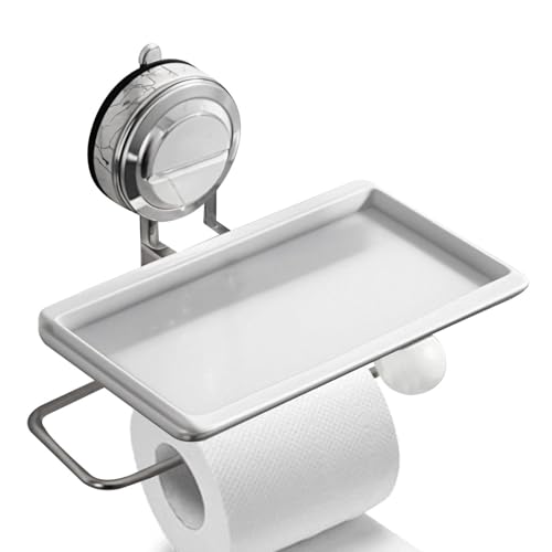 トイレットペーパーホルダーは、穴あけ不要で簡単に取り付け可能なステンレス製。壁を傷つけず、バスルームやキッチンに最適。置物トレイ付きで便利。