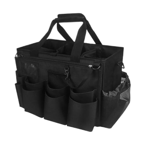 通気性ハンドル&ストラップ付きの防水折り畳みツールトート。クリーニングバッグやお手入れ用品のオーガナイザーとして最適。職場、サロン、洗車場での使用に対応。