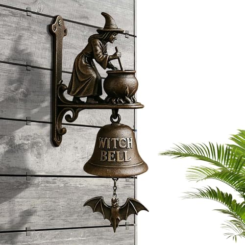 魔女とダックスフンドデザインの壁掛け手動リングベル。個性的なドアチャイムで、ショップや庭園、コテージにぴったりの新築祝いギフト。