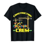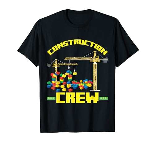 Construction CrewのカラフルなブロックビルディングレンガビルダーキッドTシャツ。子供向けのデザインで、遊び心満載のプリントが魅力。快適な着心地で、創造力を育むアイテムです。