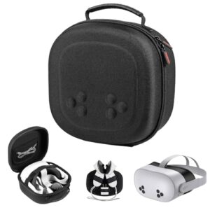 Meta Quest 3S / Quest 3 / Vision Pro用ポータブルミニキャリーケース、オリジナルヘッドストラップ、コントローラー、アクセサリー用ハードトラベルケース、効果的な保護のためのハードシェルバッグ。, ブラック///ホワイト
