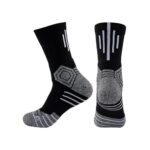 快適な着用感を追求した黒のバスケットボールソックス。通気性のある素材で、クッション性とサポート力が強化されています。激しい動きにも対応し、足元をしっかり支え、パフォーマンスを向上させます。