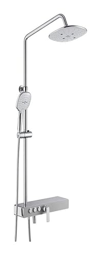 浴槽タップやキッチンタップ、シャワーヘッドを含むバスルームシャワーセットです。壁取り付け式の滝ミキサータップとレインシャワーヘッドが特徴です。