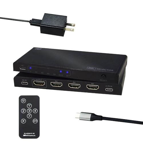 ラトックシステムのRS-HDSW41C-8Kは、4K 120Hzと8K 60Hzに対応したHDMIセレクターです。HDMI入力3、USB Type-C入力1の計4入力1出力を持ち、デバイス切替えが簡単に行えます。
