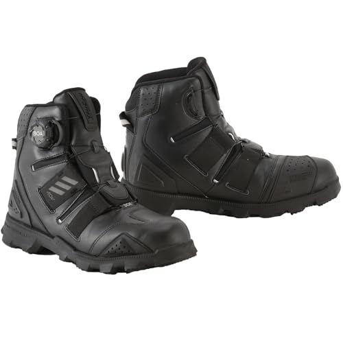 RSタイチのDRYMASTERコンバットシューズRSS010は、防水性に優れ、プロテクター内蔵で安全性を確保。BOAダイヤルでしっかりフィットし、シフトガードも装備。カラーはブラック、サイズは26.5cmです。