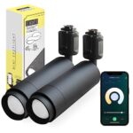 エジソンスマートミニスポットライトは、ダクトレール用の調光・調色可能なLED一体型照明です。Alexa対応で、ビーム角の調節が可能な2個セット専用リモコン付き。