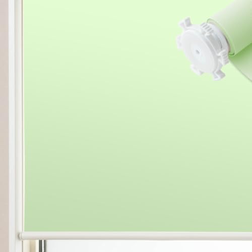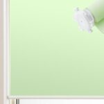 TOMOYASUのつっぱり式ロールスクリーンROLY PROPは、幅53cm・丈80cmのグリーン色で、チェーン式(左)です。サイズオーダーが可能で、プレーンタイプで非遮光仕様となっています。