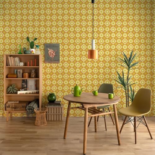 壁紙屋本舗 壁紙 おしゃれ 貼って剥がせる壁紙 のりなし壁紙 レトロ ビンテージ 花柄 黄色 49cm×2.5m レトロトレ NRT-FKA0【受注生産品・キャンセル不可】の製品情報