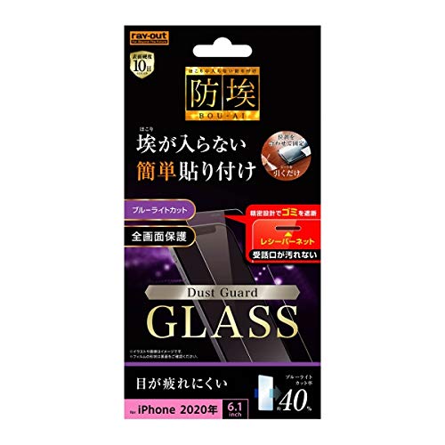 iPhone 12/Pro用のガラスフィルムです。防埃性能に優れ、10Hの硬度で傷から守ります。ブルーライトカット機能付きで目にも優しく、レシーバーネットも付属しています。