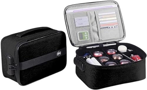 印鑑ケース・貴重品ボックス・収納ポーチ。ダイヤルロック付きで防犯対策。内部仕切り調整可能、撥水・防傷素材使用。旅行や出張に便利な事務用品整理に最適。(ブラック)