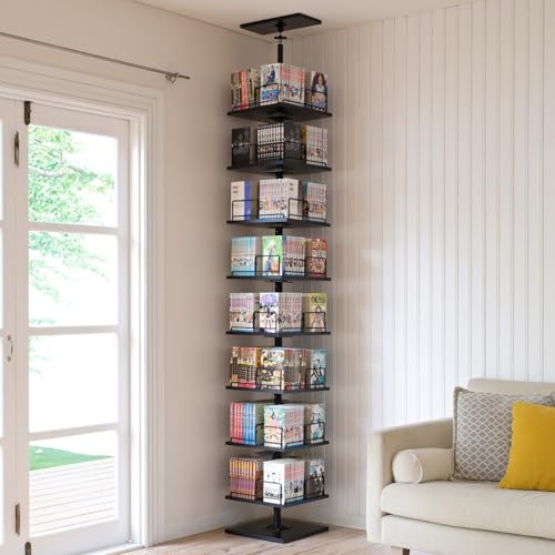 山善(YAMAZEN) 本棚 突っ張り 回転式本棚 つっぱり棚 回転 大容量 全体耐荷重120kg 省スペース ラック 8段 幅34cm×奥行34cm×高さ222-262cm ブックシェルフ 組立品 ブラック/マットブラック RTKH-3434(BK/MBK) 高価買取中
