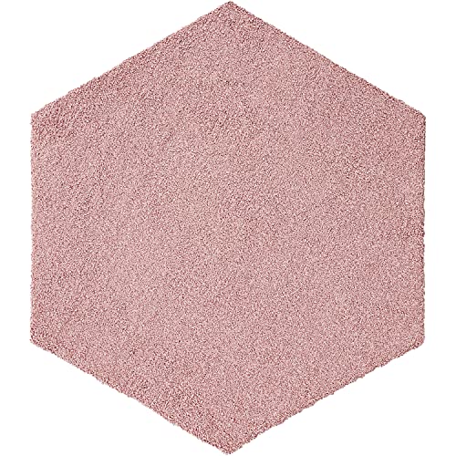 ラグタスの洗えるヘキサゴンタイルラグ(43×50cm)は、10枚セットでローズピンク色。置くだけ吸着、防音、滑り止め加工、床暖房対応、ペットにも安心のカットパイルです。