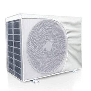 ライフ小屋のエアコンカバーは、防水・防塵・日焼け止め効果があり、室外機を保護します。サイズE(3P:92×35×69cm)で、アルミ製、取り外し不要の設計です。
