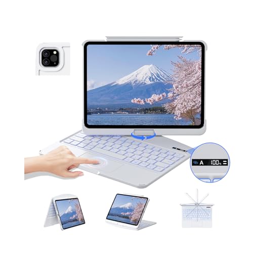 DODOLIVE iPadキーボードケースは、Pro 12.9インチ第3/4/5/6世代対応、360度回転式で、Bluetooth 5.3搭載。超高精度トラックパッドと7色バックライト、ペンホルダー付き。