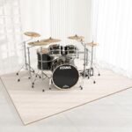 厚手のドラムマットで、防音効果と床傷防止に優れています。電子ドラムやピアノにも対応し、滑り止め機能付き。スタジオや楽器演奏に最適なベージュのカーペット(90x150cm)。