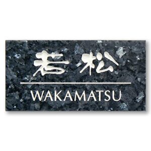 表札 石 石材表札 デザイン タイプ 接着剤付き おしゃれなデザイン かわいいイラスト (ブルーパール)