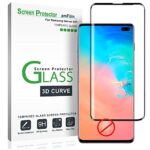 amFilmのSamsung Galaxy S10 Plus用強化ガラスフィルム。液晶画面をフルカバーし、ドットマトリックスデザイン。指紋スキャナとは互換性なし。ブラック色。1枚入り。