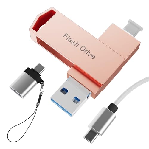 512GBの4in1 USBメモリ。アプリ不要でアルバムからデータ保存可能。iOS/USB/Micro USB/Type-C対応、高速バックアップ。回転式デザイン、ストラップ付、ピンク色でスマホの容量不足を解消。