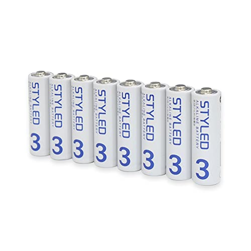 STYLED 乾電池 単3形 アルカリは、使用推奨期限が10年で、安定したパフォーマンスを提供します。8本入りで、リモコンやおもちゃなど幅広い用途に最適です。