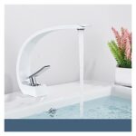 クロムバスルームのシングルハンドル洗面台蛇口。磨かれた金の仕上げ。熱と冷を混合できるミキサータップ。デッキマウントタイプ。色はホワイトとクロムのコンビ。キッチン・バス用に最適。