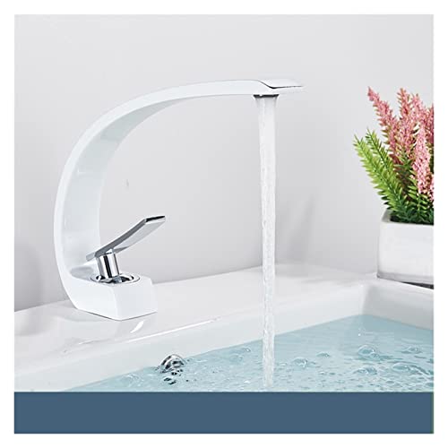 クロムと白のデザインが美しい、シングルハンドルのバスルーム用蛇口。熱い水と冷たい水を簡単に混合可能で、デッキマウントタイプ。キッチンやバスルームに最適なインテリアアイテムです。