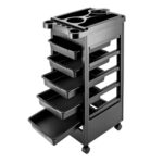 ヘアサロントロリーカートは、5つの引き出しとホイールを備え、柔軟な移動が可能です。プロのヘアスタイリストや美容師に最適なビューティー機器。