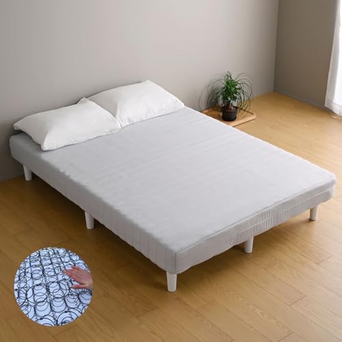 山善(YAMAZEN)のダブル脚付きマットレスは、ボンネルコイル450個使用、耐荷重200kg。サイズは140×195×36cm、マット厚17cm。圧縮梱包で組み立ても簡単、掃除しやすいホワイトウォッシュ仕様。