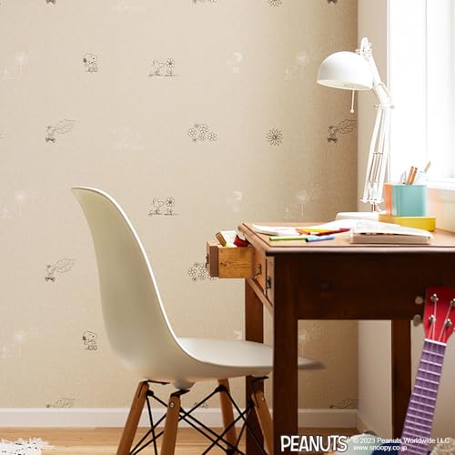 壁紙屋本舗のスヌーピー壁紙(FE-76711)はベージュのツイードデザインで、サイズは92.5cm幅でm単位販売。可愛いアクセントクロスとして子供部屋に最適、防カビ加工あり。受注生産品のためキャンセル不可です。