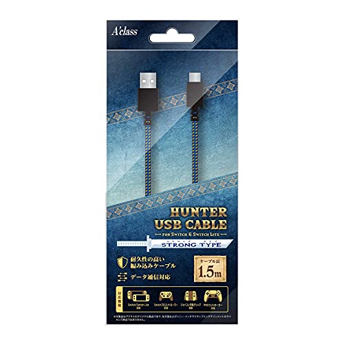 HUNTER USBケーブル(1.5m)カムイブルーは、Switch/SwitchLite対応の高品質充電ケーブルです。耐久性に優れ、快適なゲームプレイを実現します。カラフルなデザインが特徴です。