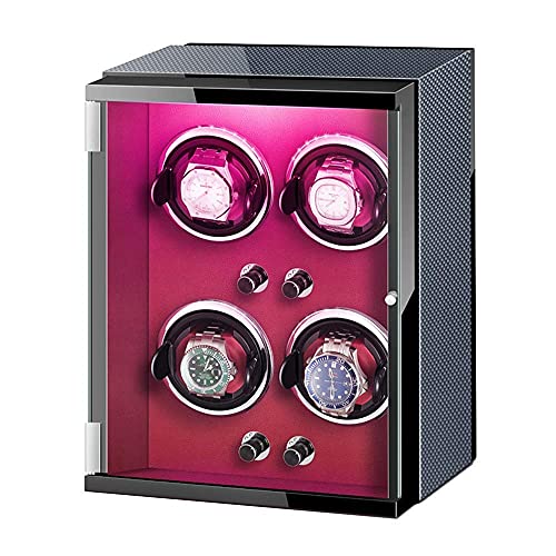 自動巻き時計用ウォッチワインダー。カーボンファイバー&レザー外装。カラフルなライトとフレキシブルな時計ピロー付き。静かなモーターで快適に使用可能。
