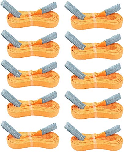 ナイロンスリングベルト35mm×6m、10本入り。使用荷重1200kgの強度、効率的な作業をサポート。安全性向上のため警告線付き。園芸や引越しなど多用途に最適でコスパも良好。