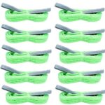 ナイロンスリングベルト50mm幅、6m長、10本セット。使用荷重1600kgで強度を確保。園芸や引越し、出荷作業に最適。警告線付きで安全性向上。コスパに優れた便利な道具です。