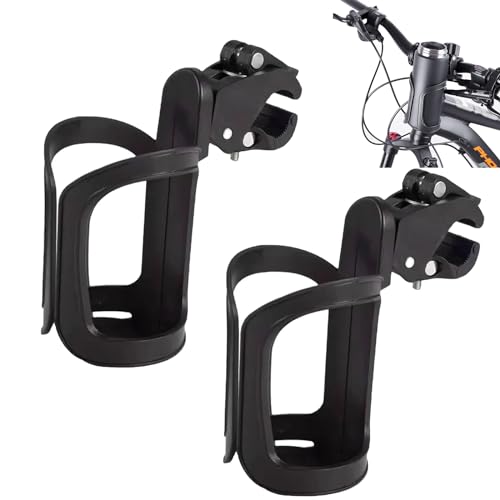2つのドリンクホルダーが360度回転し、角度調整も簡単。自転車、バイク、車椅子、ベビーカーに対応するボトルホルダーです。手軽に取り付けられ、使いやすさ抜群。