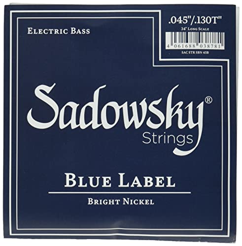 Sadowskyブルーラベルベース弦は、ニッケル製の5弦セットで、ゲージは045-130です。音色は明るく、プレイアビリティに優れ、演奏スタイルを問わず幅広く対応します。