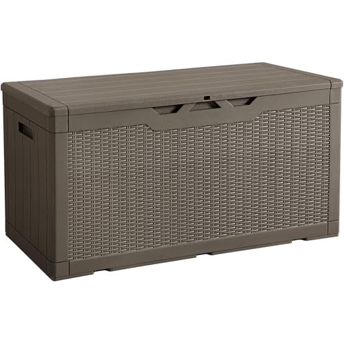 物置 収納庫 大容量 倉庫 屋外収納庫 ベンチストッカー 大型物置 ベランダ収納 アウトドア収納 ガーデン収納 おしゃれ (ダークブラウン, 幅123*奥行57*高さ62cm)
