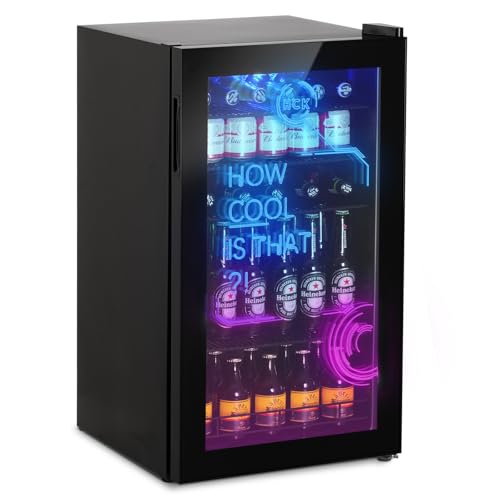 HCK ゲーミング冷蔵庫 98L はドリンク専用の大容量冷蔵庫。LEDネオン付きの透明ガラスドアでおしゃれなデザイン。静音・省エネ機能に優れ、バーやカフェ、寝室など多用途で使用可能です。