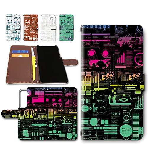 Galaxy S21+ SCG10(SM-G991J)用の手帳型スマホケースです。カメラ穴付きで、デザインBのブラック×マルチカラーの柄が特徴。docomoとau対応の製品です。