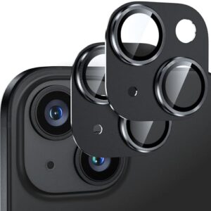 【2枚】カメラフィルム iPhone15/iPhone15 Plus用 カメラ保護 アルミ合金製 強化ガラス アイフォン15/15plusカメラカバー キズ防止 耐衝撃 露出オーバー防止 超高透過率 あいふぉん15/あいふぉん15プラス レンズカバー ブラック