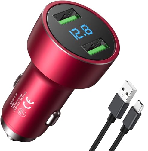 車載充電器はPSE認証済みで、4.8Aの急速充電が可能です。2つのUSBポートとUSB Type-Cケーブルが付属し、12V/24V車に対応。電圧計機能もあり、iPhoneやSamsung Galaxyに最適です。