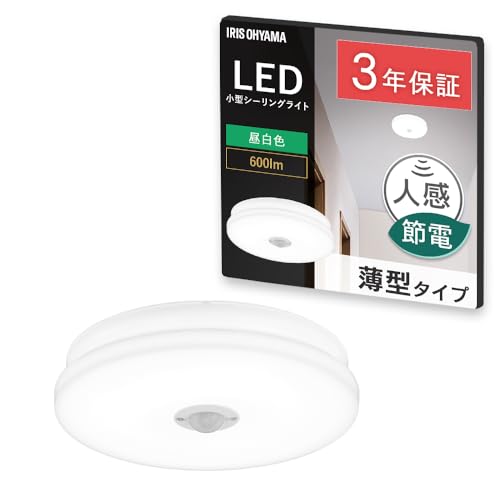 アイリスオーヤマの小型シーリングライトSCL6N-MS-U2は、600lmの明るさで昼白色の光を提供。薄型デザインで玄関、クローゼット、キッチン、脱衣所などに最適。人感センサー付きで、便利さをプラス。