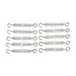 HFS304ステンレスターンバックルは、耐腐食性に優れた304ステンレス製。10個セットで、様々な用途に最適。調整が簡単で、強度も高い。屋外作業やDIYにおすすめ。