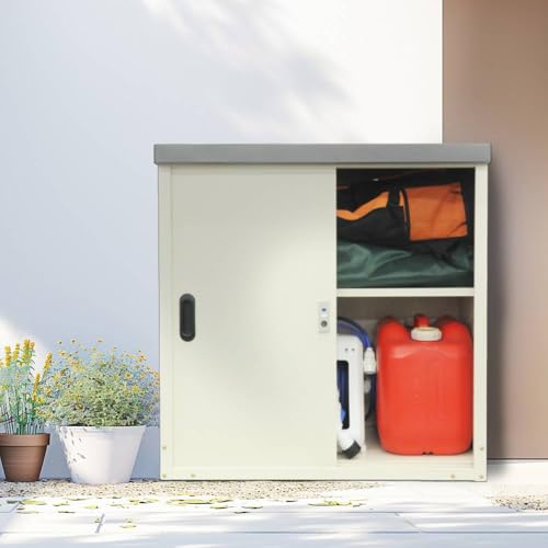 Bonarca 屋外 倉庫 小型 【日光で熱くなりにくいホワイト&鍵付き】 縦長 おしゃれ 防水 ガーデン倉庫 小型倉庫 鍵付き 物置 幅80 収納庫 収納 庭 二段 ベランダ 収納ボックス スチール製 サビにくい SD-IG8050の高価買取
